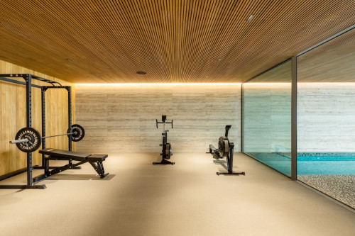 Inside, every detail articulates modern sophistication, with amenities that include a heated swimming pool and Turkish bath, as well as a private cinema room and wine cellar. These indulgent features create an environment where luxury meets comfort. Furnishings throughout the villa are selected to echo the modern architectural lines, ensuring an ambiance that is both elegant and welcoming.